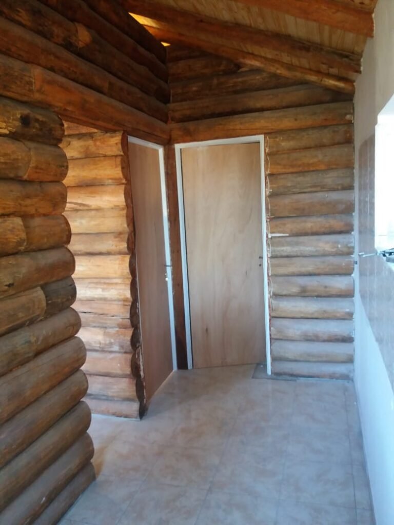 - Paredes de meolos de eucalipto, ensambladas con precisión artesanal.